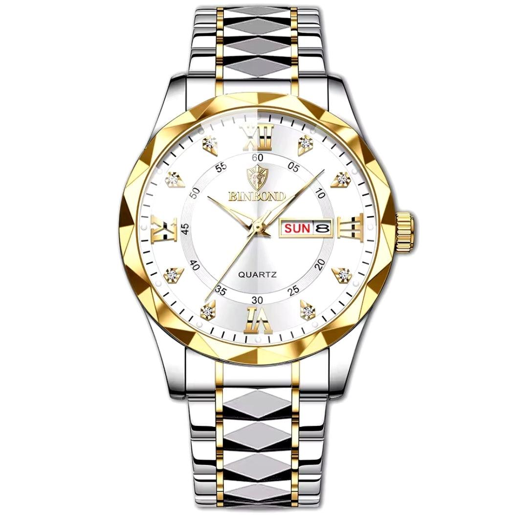 BINBOND B2521 Top Brand Diamond Mirror Luxury Men Quartz Wristwatch