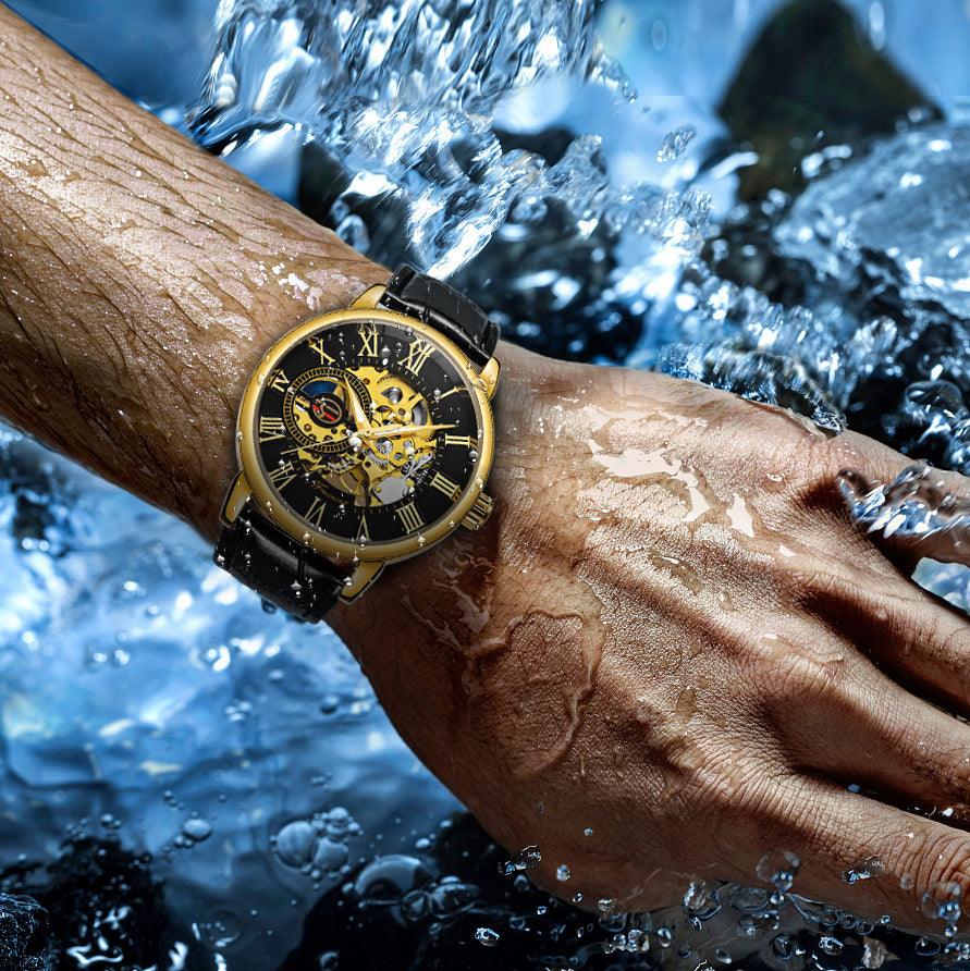 Forsining Skeleton Hollow Mechanical Watch for Men Leather Strap