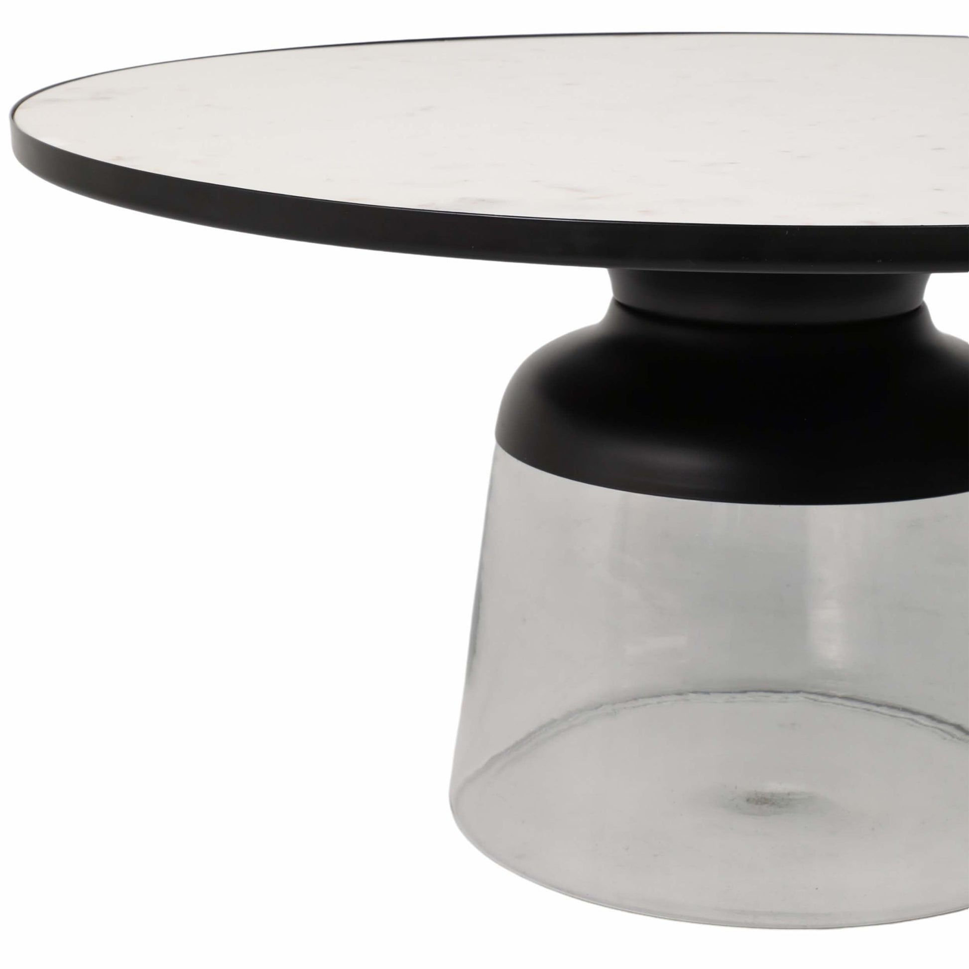 The Glass Base Coffee Table combines contemporary style with premium craftsmanship for a striking centerpiece. Featuring a sleek round marble top with subtle veining, it exudes elegance and refinement. The sturdy frosted glass base offers a modern visual contrast, while bold black metal accents add a sophisticated edge. Perfect for modern, minimalist, or contemporary interiors, this coffee table balances style and functionality, providing a durable surface for décor, drinks, or everyday essentials. Its unique combination of materials and textures makes it an eye-catching statement piece that elevates any living space.
