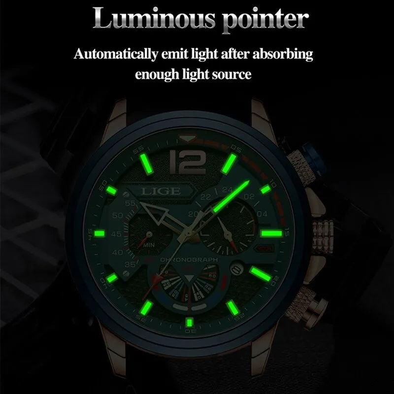 STOP WATCH, Shock Resistant, Luminous, Auto Date, Chronograph, Complete Calendar, Water Resistant, Swim & Luminous Hands