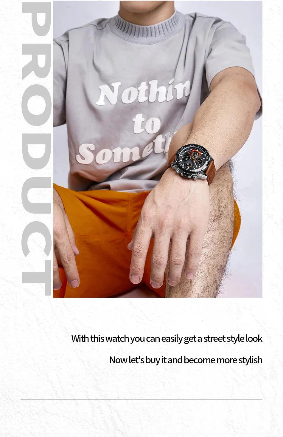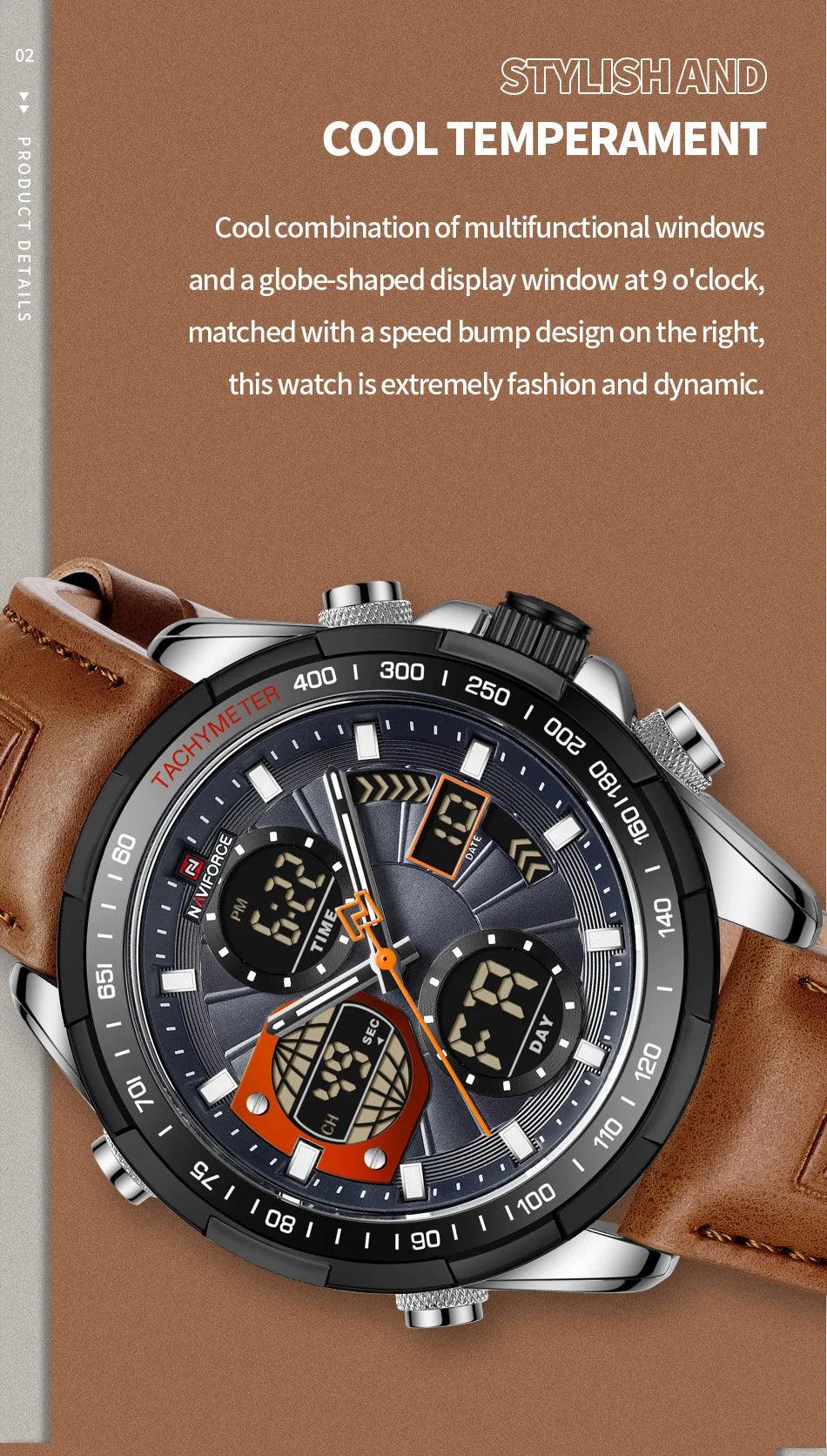 NAVIFORCE 9197L Strong Luminous Dual Display Waterproof Quartz Genuine Leather Wristwatch