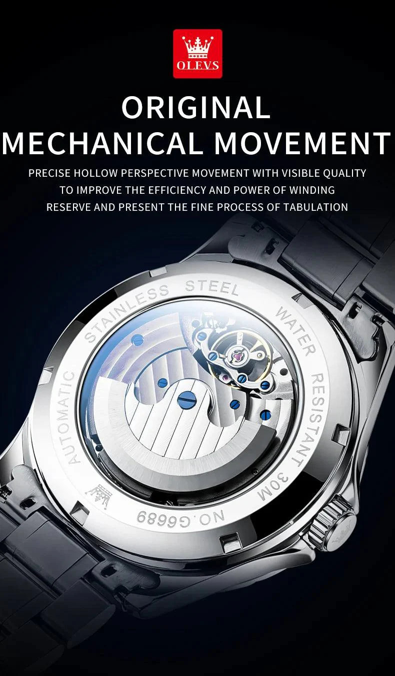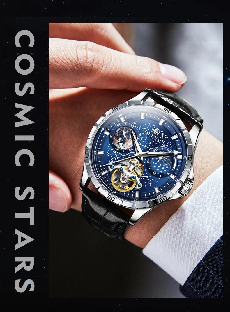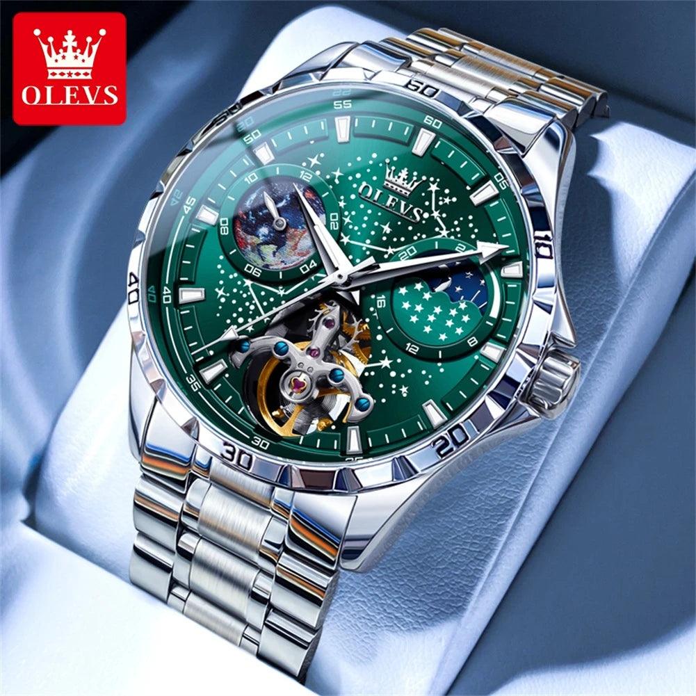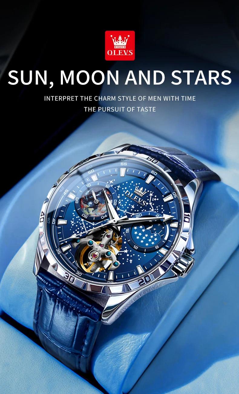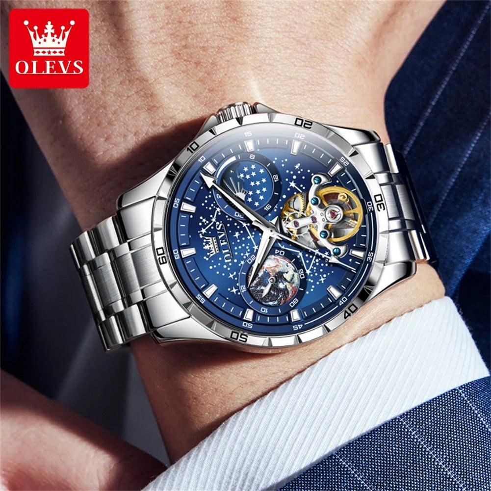 OLEVS 6689 Starry Sky Disk Waterproof Luminous Automatic Moon Phase Wristwatch