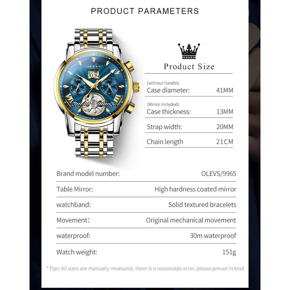 OLEVS 9965 Original Luxury Skeleton Flywheel Mechanical Wristwatch