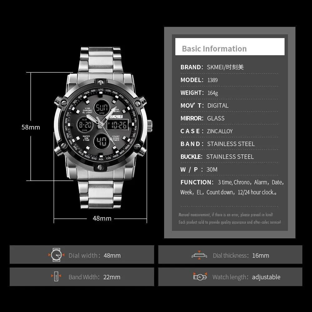 SKMEI 3 Time Back Light Display Digital Watches Mens 1389